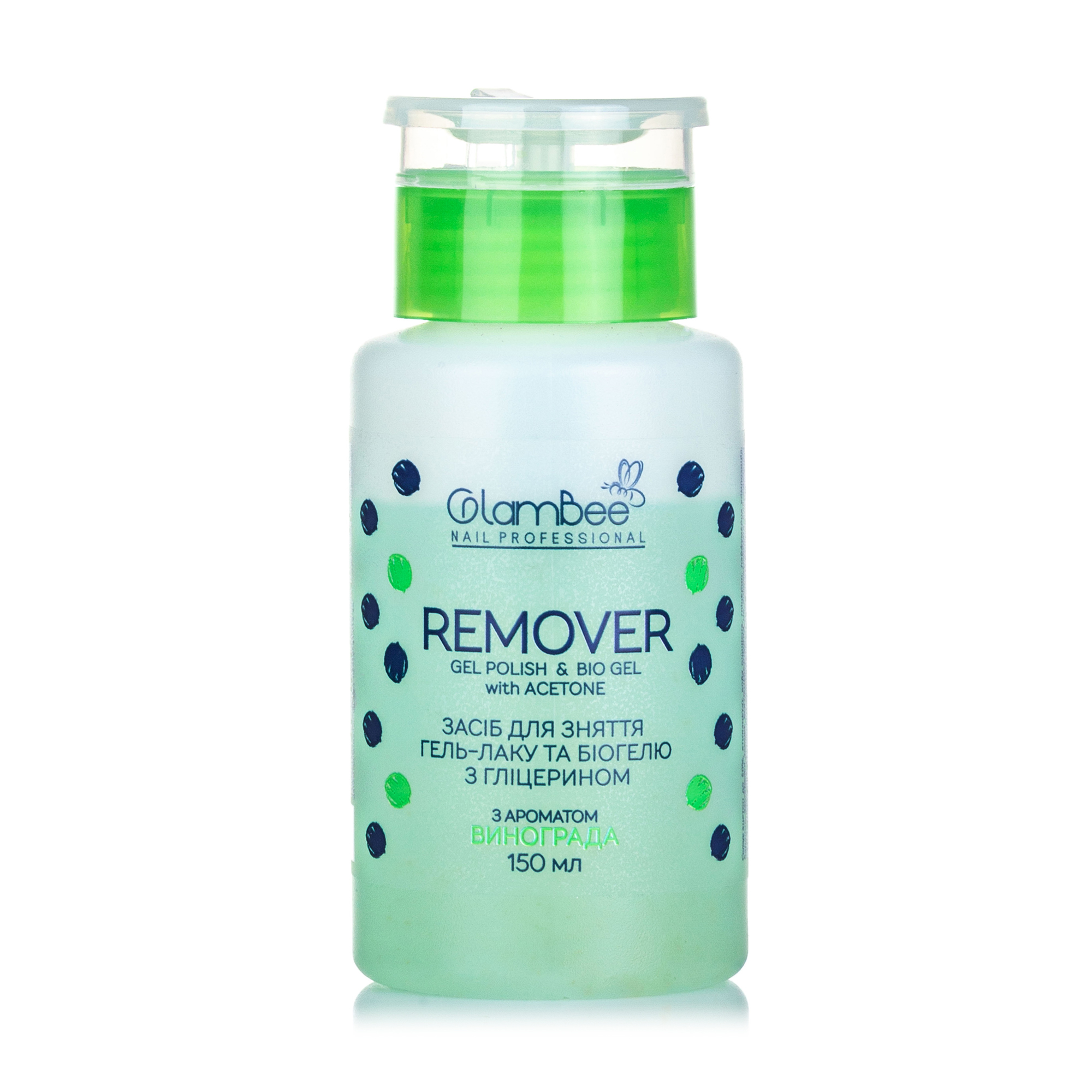 Рідина для зняття гель-лаку та біогелю GlamBee Remover Виноград, 150мл