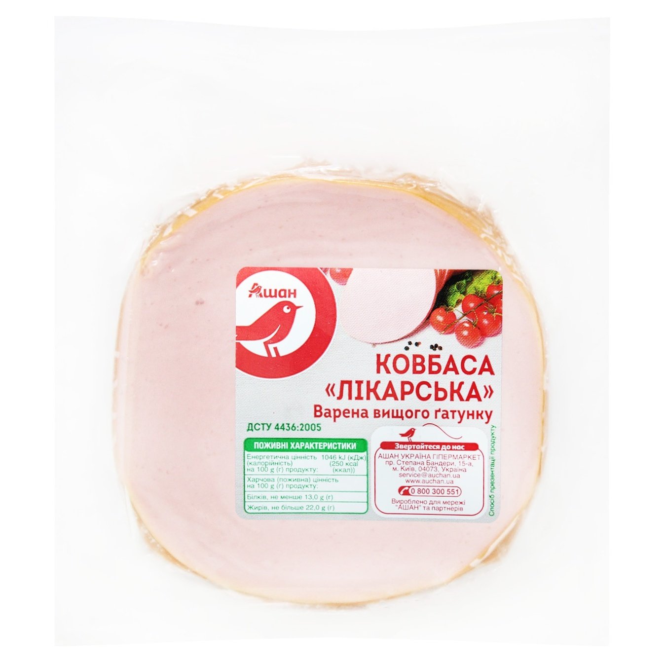 Ковбаса Ашан Лікарська варена в/ґ
