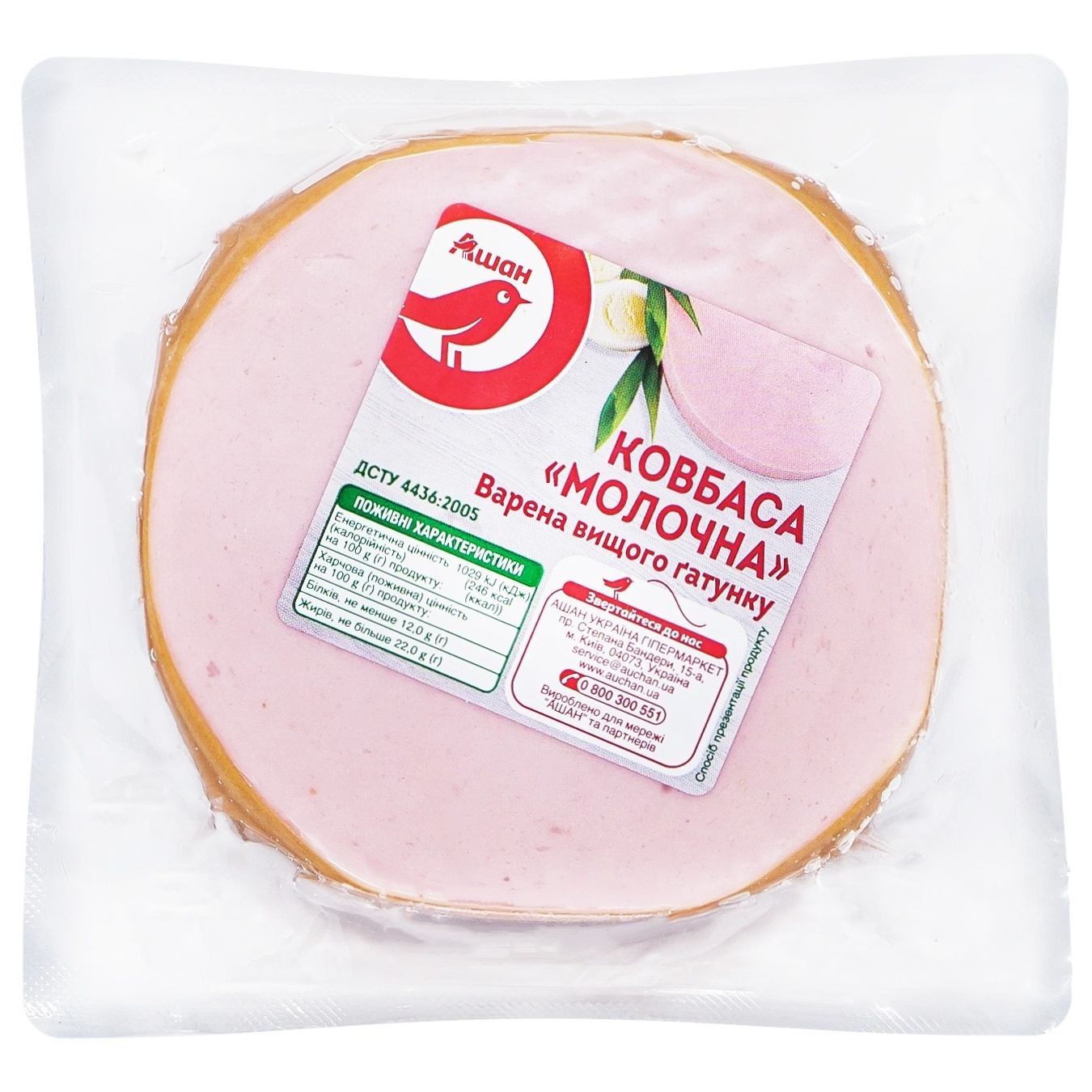 Ковбаса Ашан Молочна варена вищий сорт