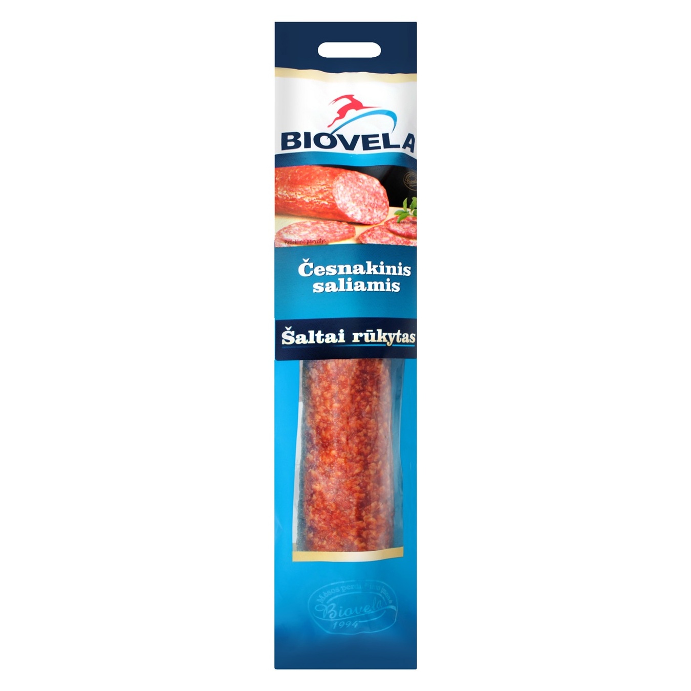 Ковбаса Biovela Салямі з часником сирокопчена в/г 200г