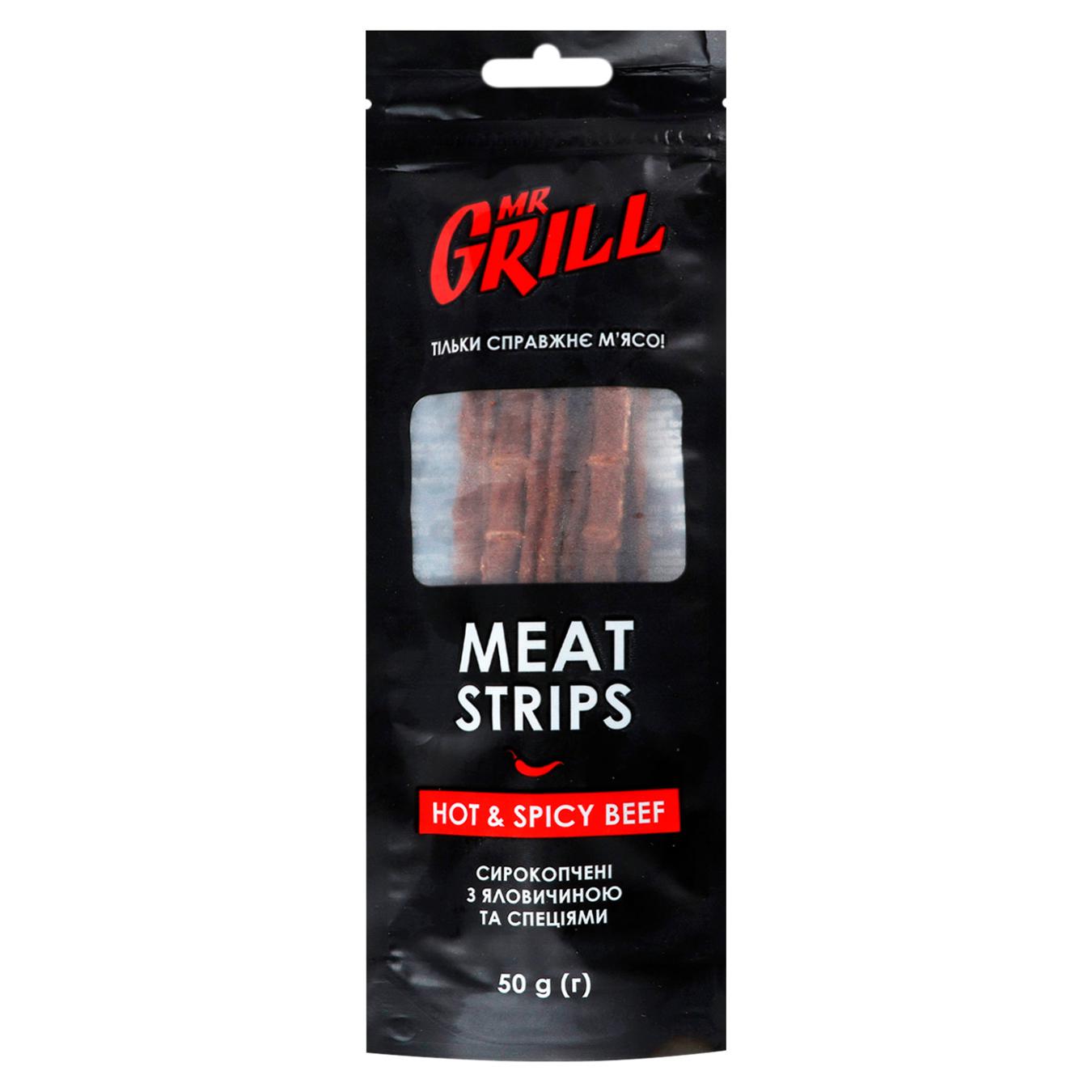 Ковбаски Mr.Grill Meat Strips Hot&Spicy Beef сирокопчені 50г