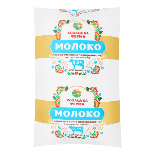 Молоко 2.5% пастеризоване Козацька ферма м/у 900г