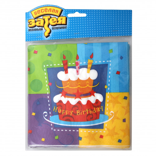 Салфетка 33см №1502-0707 Торт Birthday Веселая затея 12шт