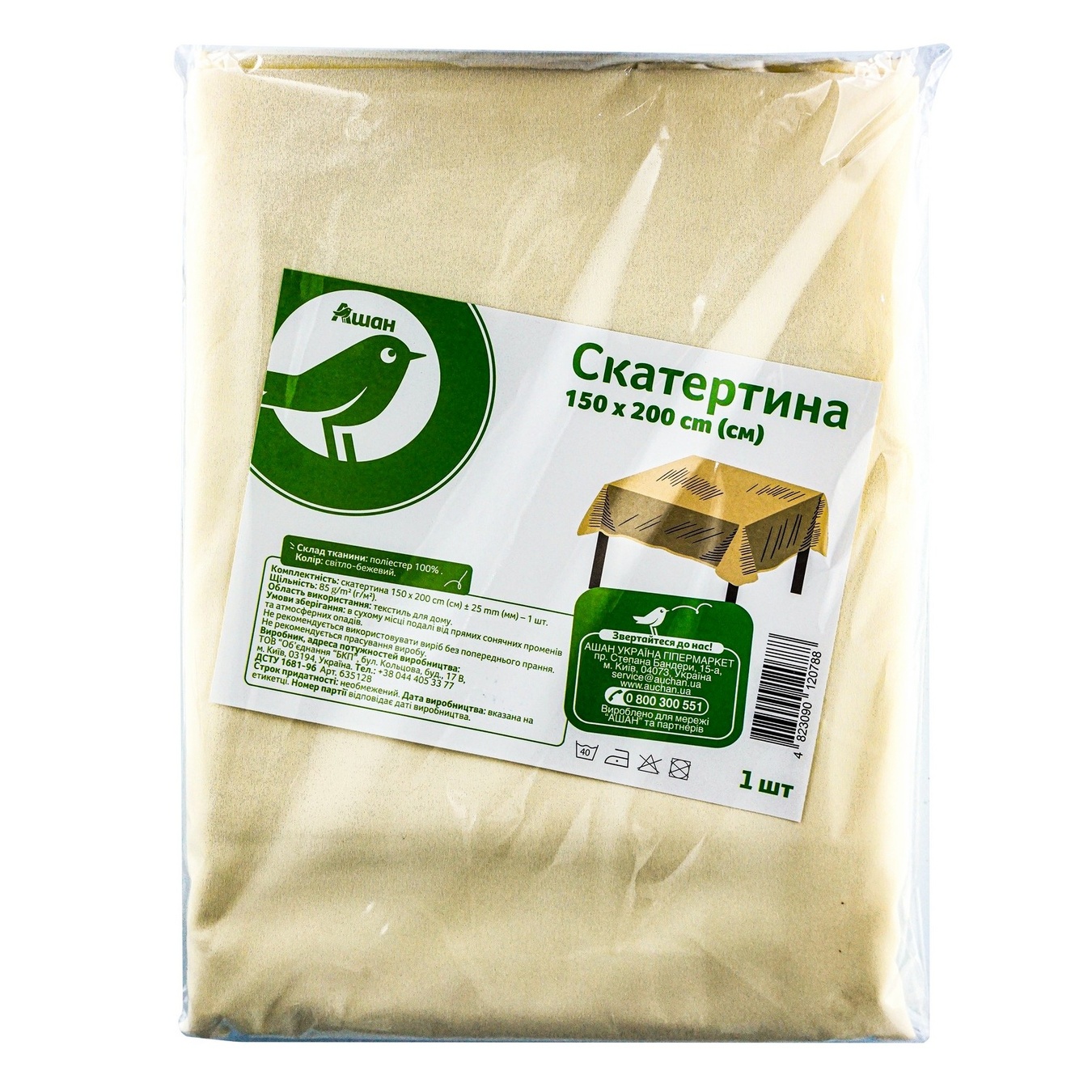 Скатертина Ашан світло-бежева 150х200см