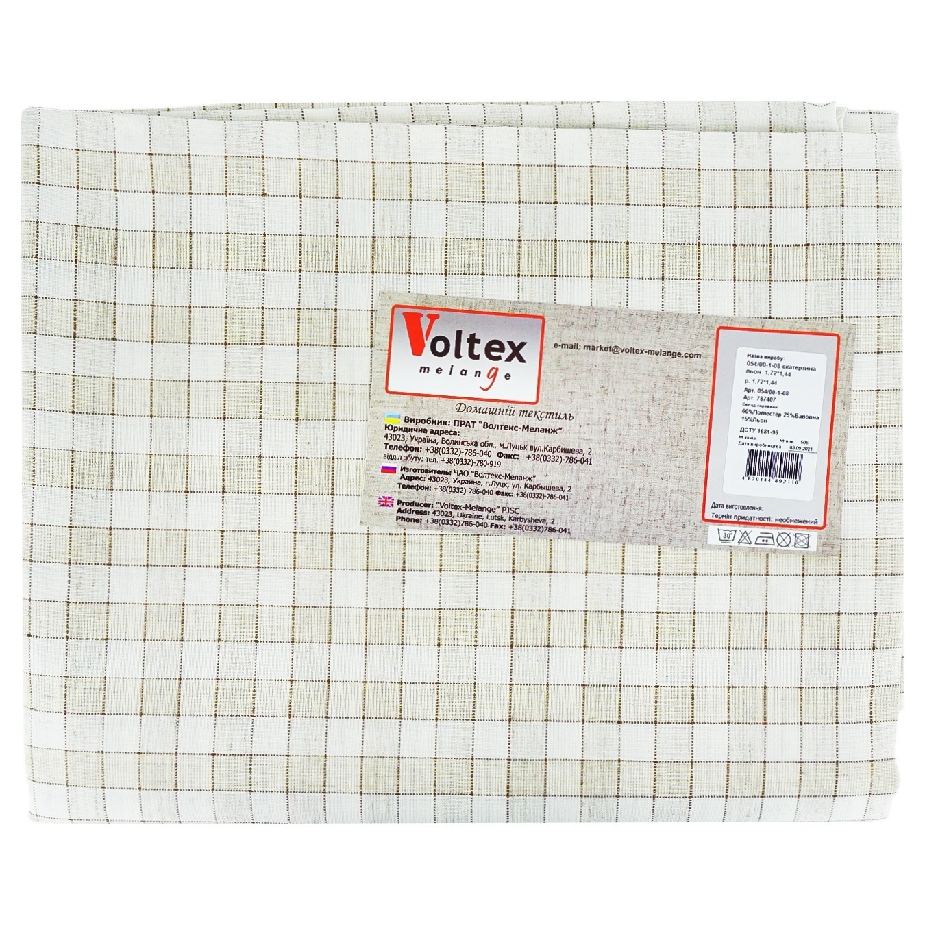 Скатертина Voltex Melange Клітинка льняна 1,72*1,44м
