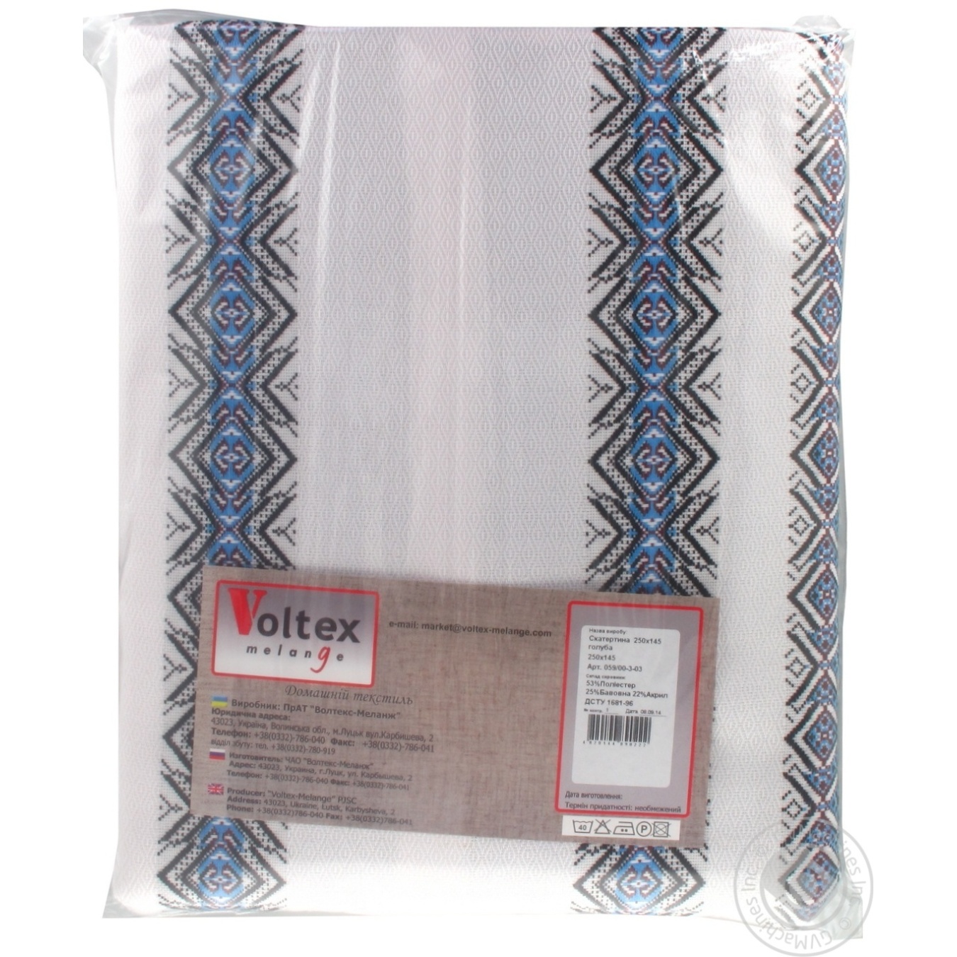 Скатертина Voltex melange синя 250*145см