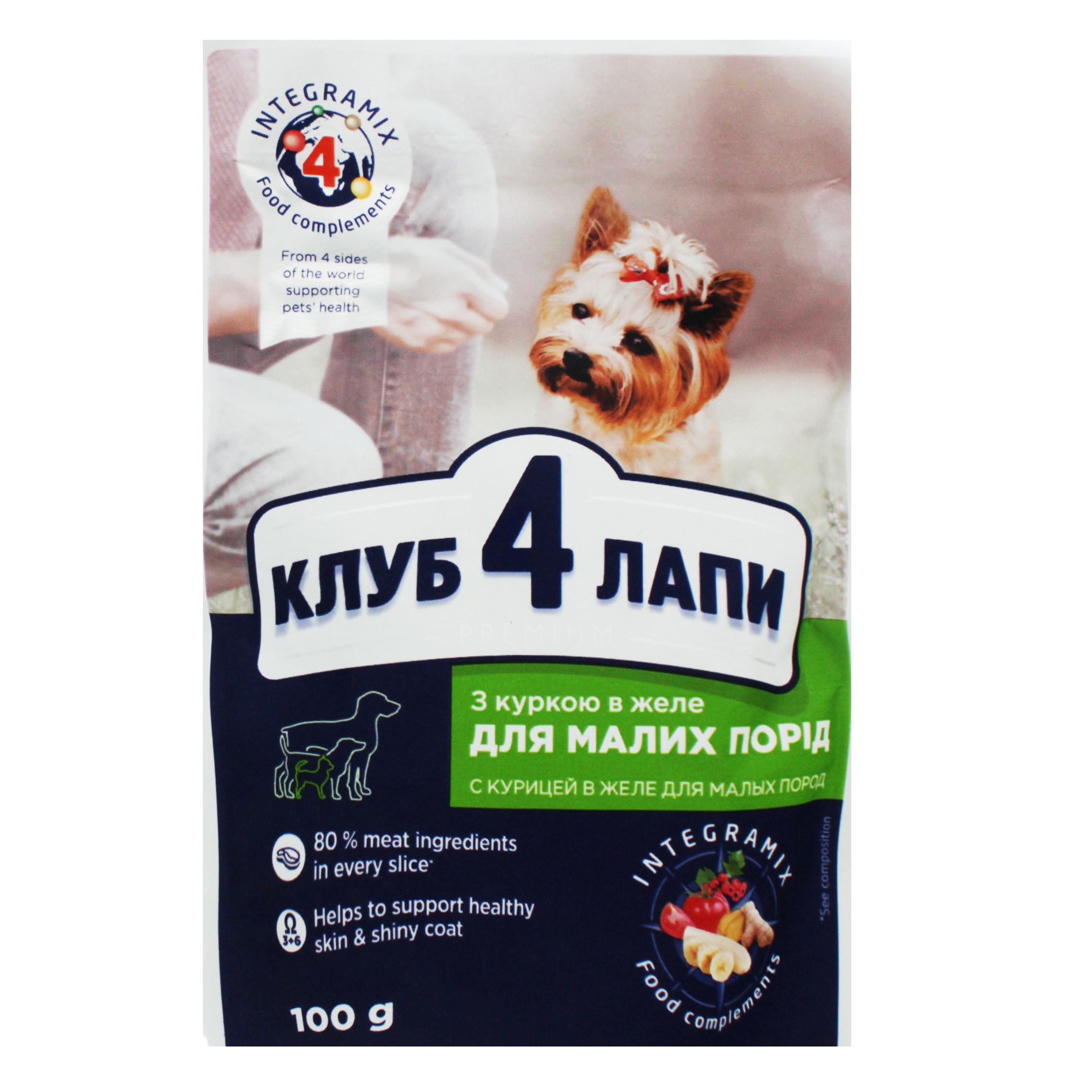 This page displays as much information as possible about Корм Клуб 4 лапи Преміум курка в желе для собак 100г.