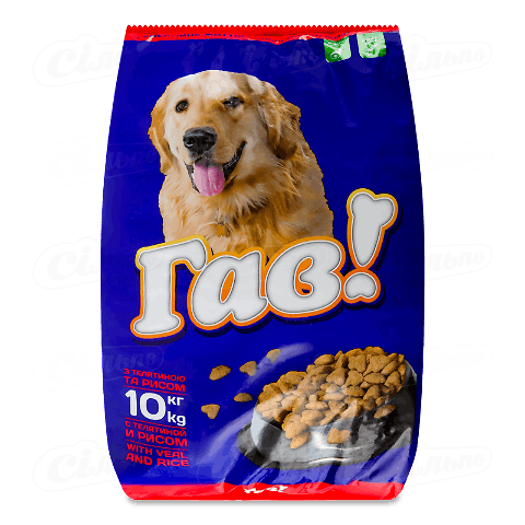 Дана сторінка відображає максимально повну інформацію про Корм для собак Гав! з телятиною та рисом сухий, 10кг.