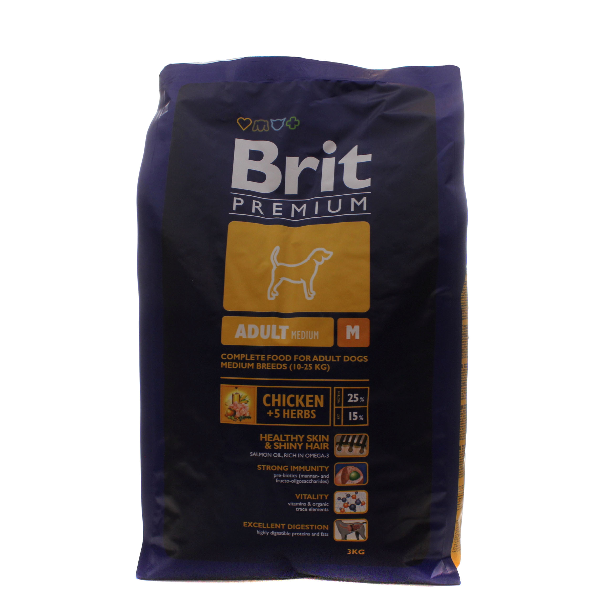 This page displays as much information as possible about Корм сухий для дорослих собак середніх порід від 10 до 25кг з куркою Brit м/у 3кг.