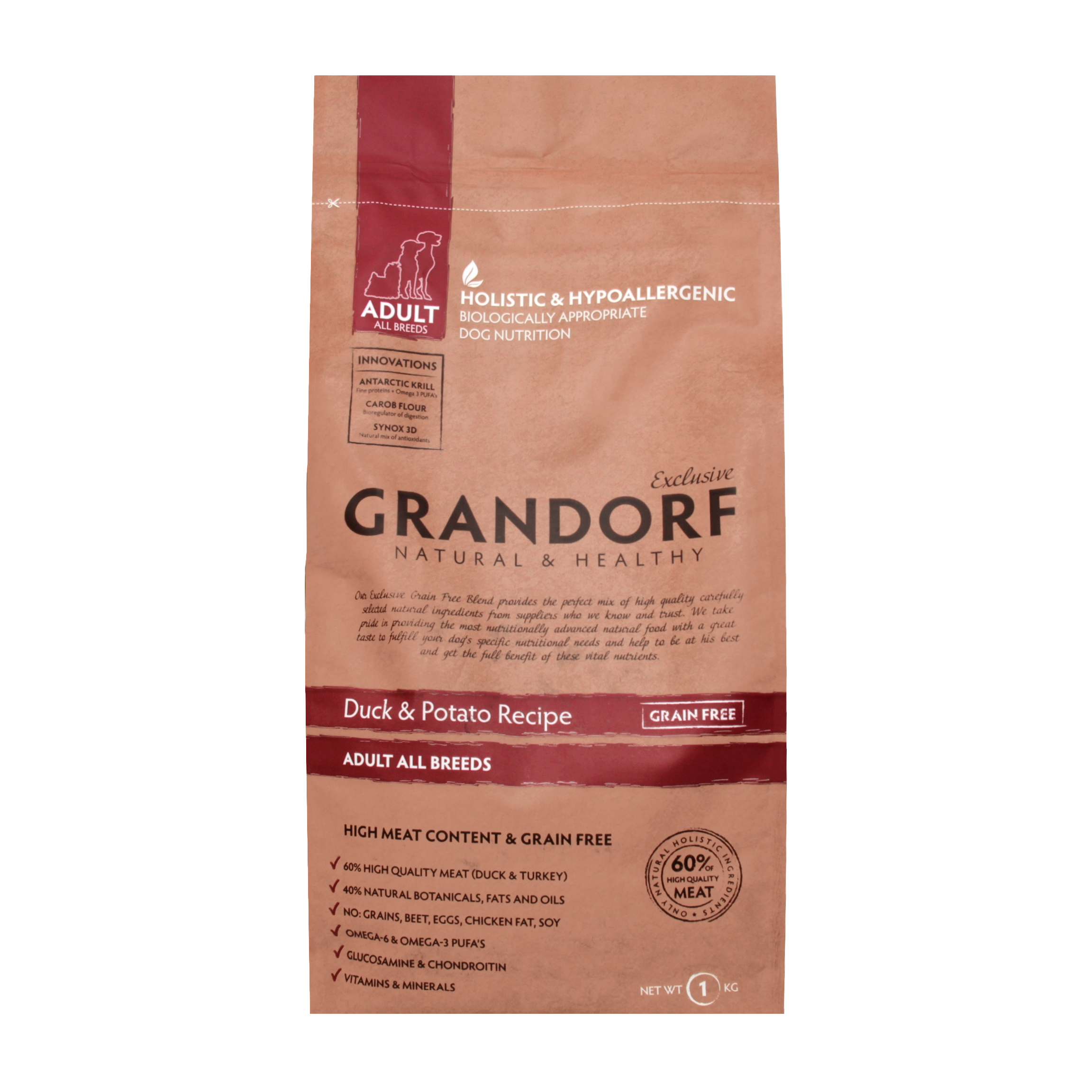 Дана сторінка відображає максимально повну інформацію про Корм сухий для дорослих собак усіх порід Duck&Potato Grandorf м/у 1кг.