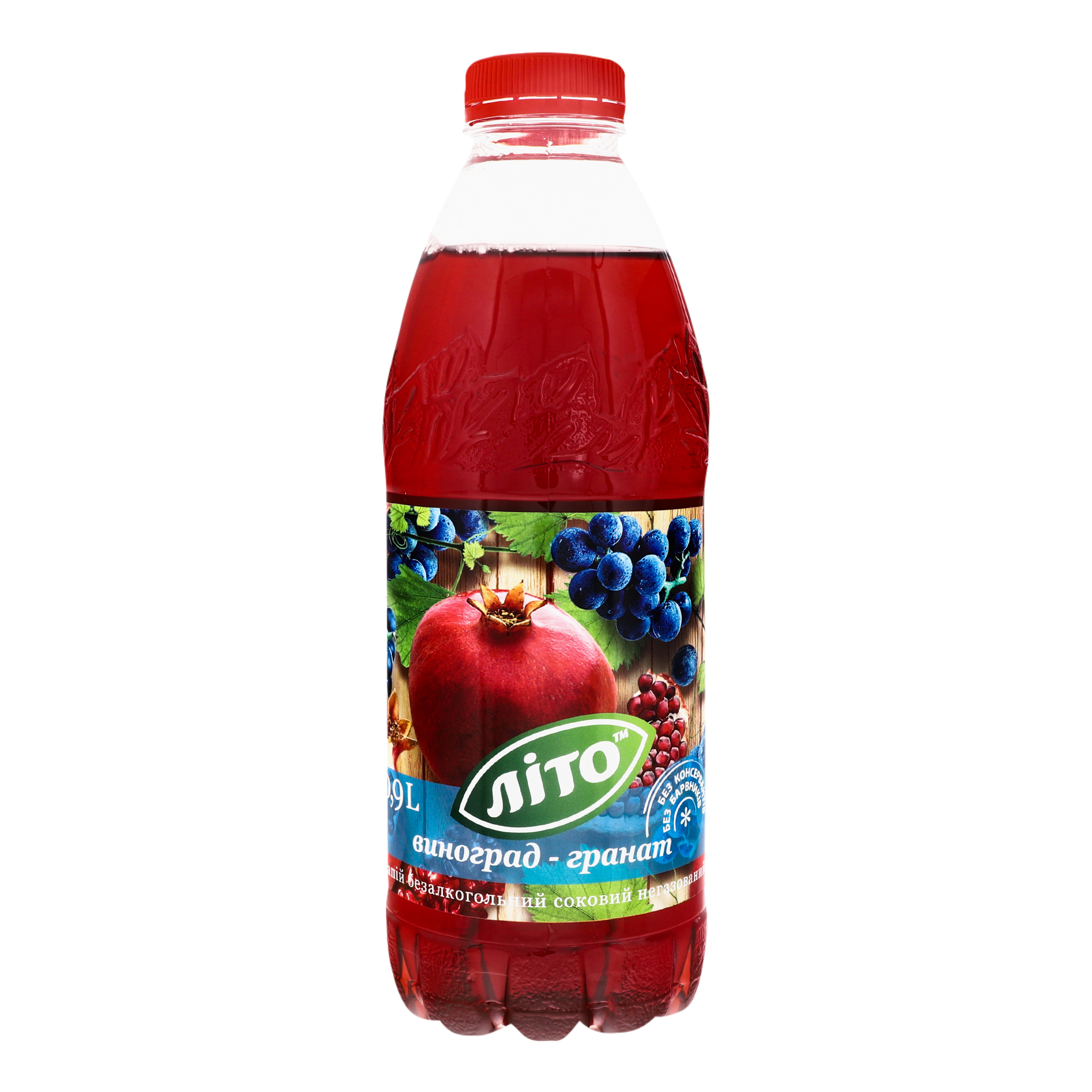 Дана сторінка відображає максимально повну інформацію про Напій безалкогольний соковий негазований Виноград-гранат Літо п/пл 0.9л.