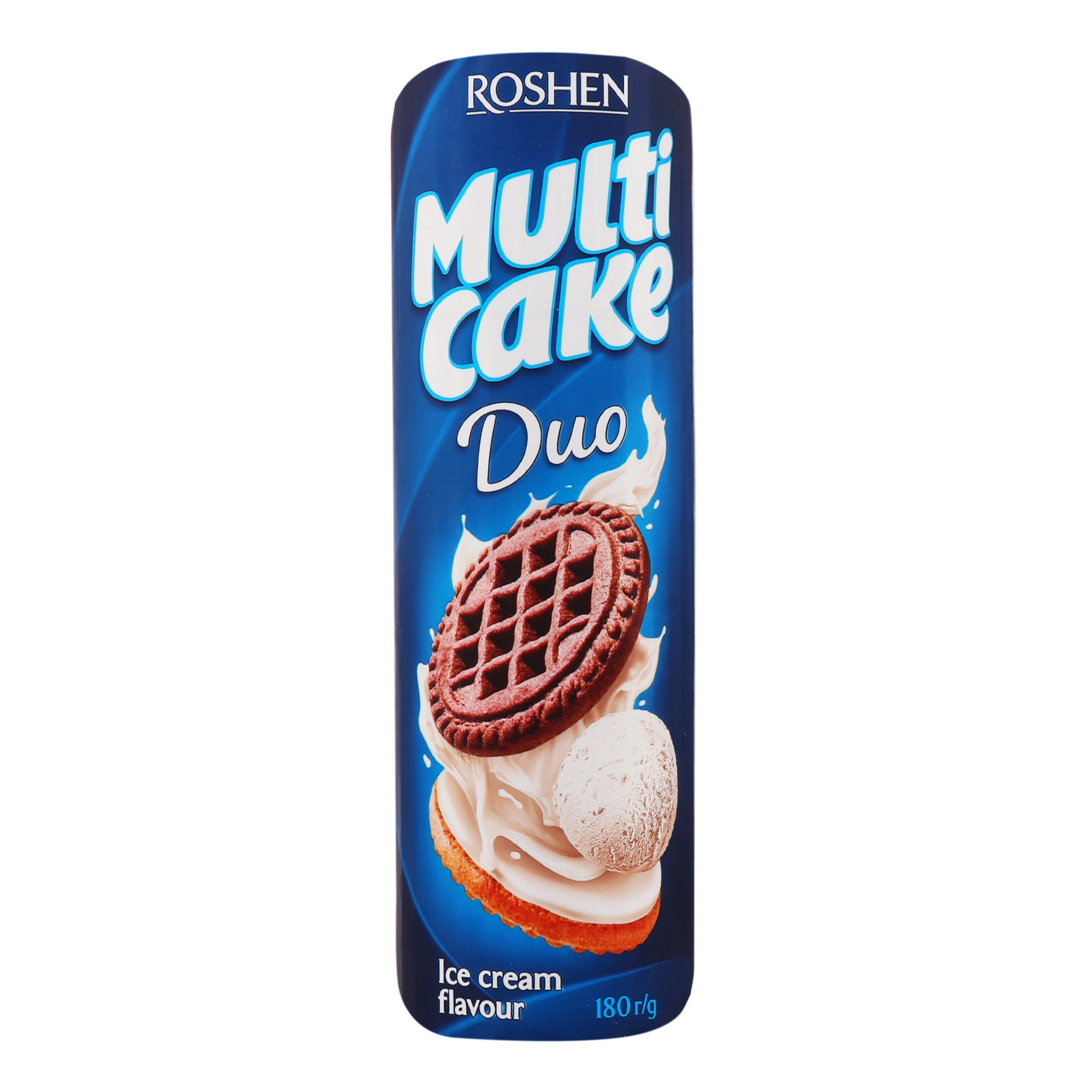 This page displays as much information as possible about Печиво з начинкою зі смаком пломбіру Duo Multicake Roshen м/у 180г.