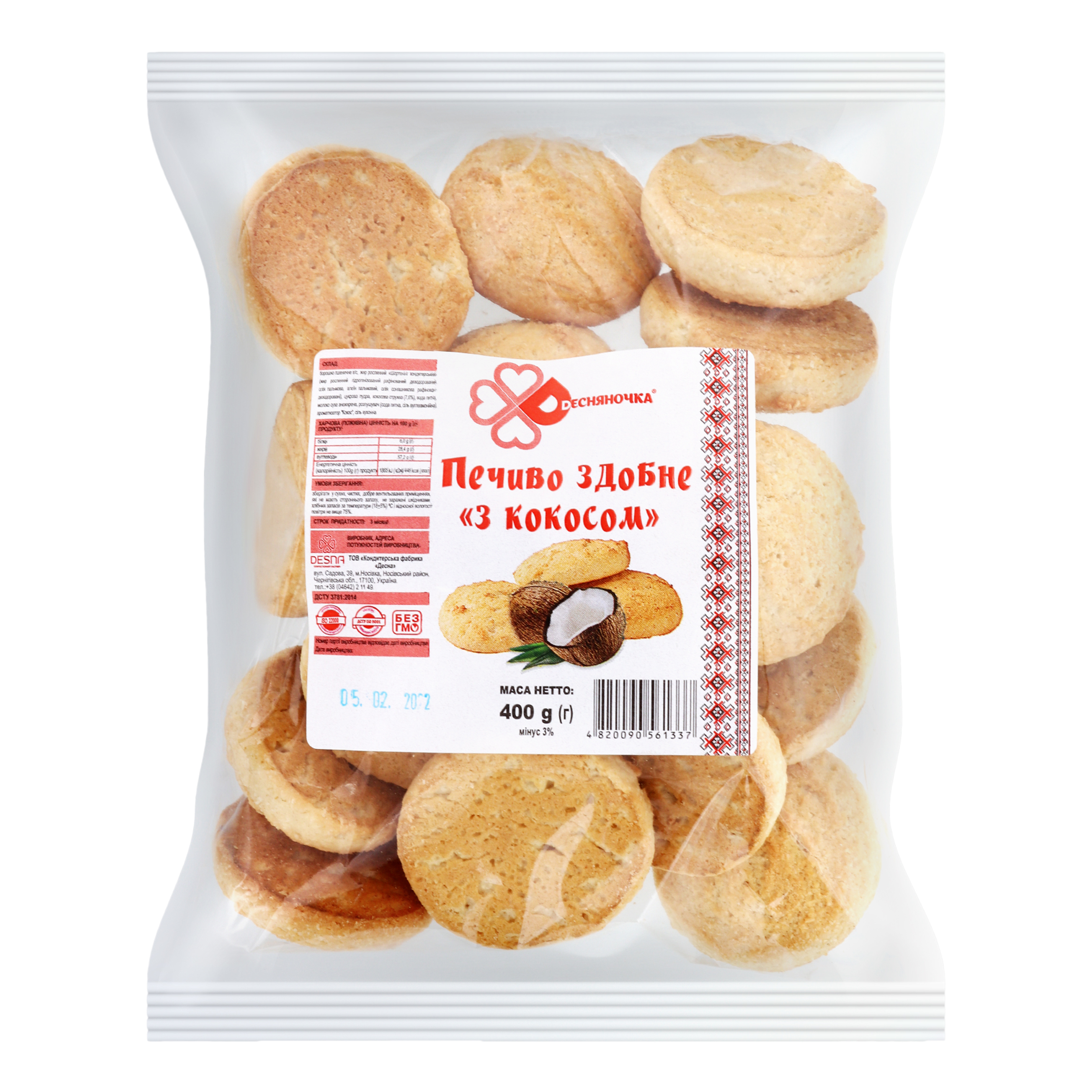 Дана сторінка відображає максимально повну інформацію про Печиво здобне З кокосом Десняночка м/у 400г.