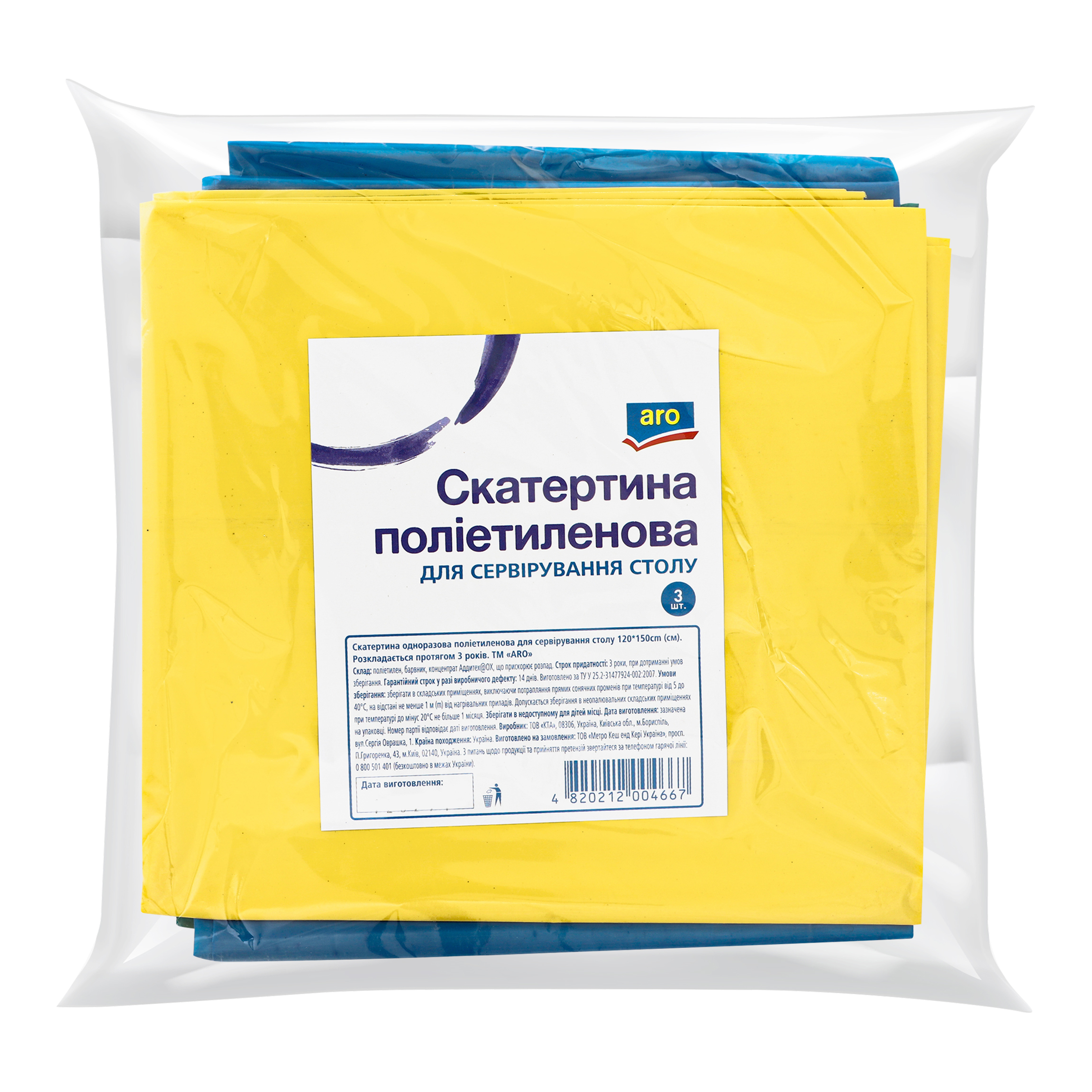 This page displays as much information as possible about Скатертина поліетиленова 120х150см Aro 3шт.