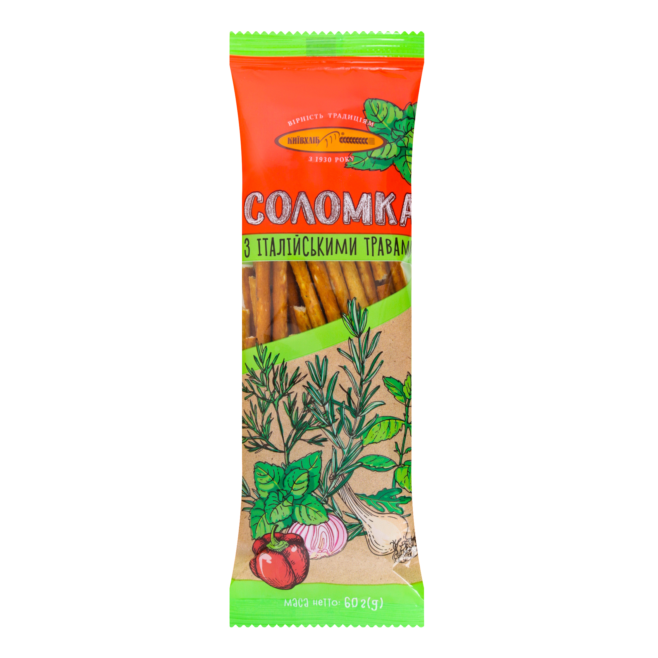 Дана сторінка відображає максимально повну інформацію про Соломка з італійськими травами Київхліб м/у 60г.