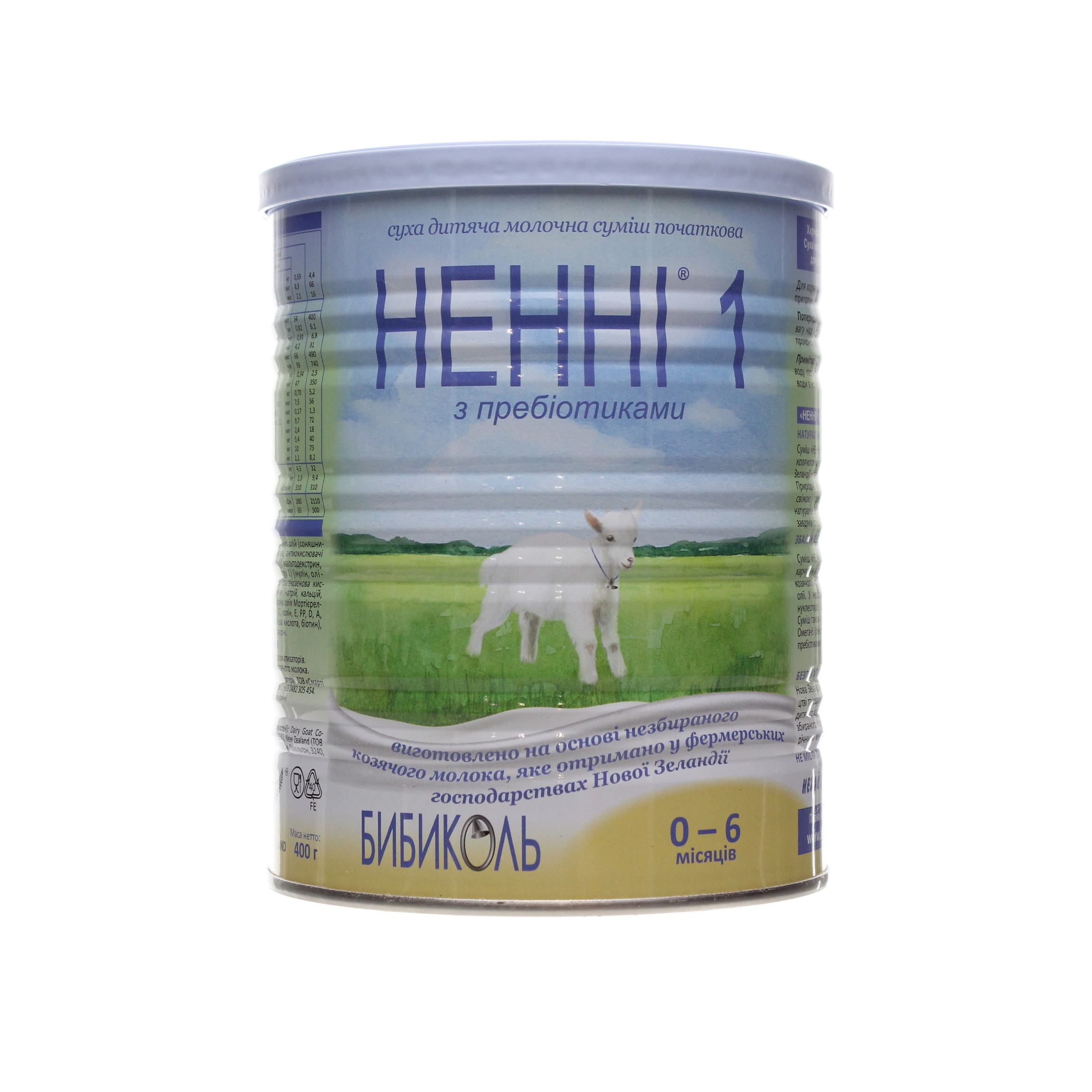 This page displays as much information as possible about Суміш суха молочна дитяча початкова з пребіотиками 0-6 міс Ненні 1 Бибиколь з/б 400г.