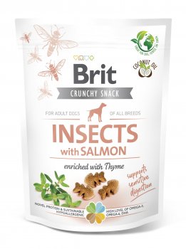 Ласощі для собак Brit Care Dog Crunchy Cracker Insects with Salmon для чутливого травлення, комахи, лосось і чебрець, 200г